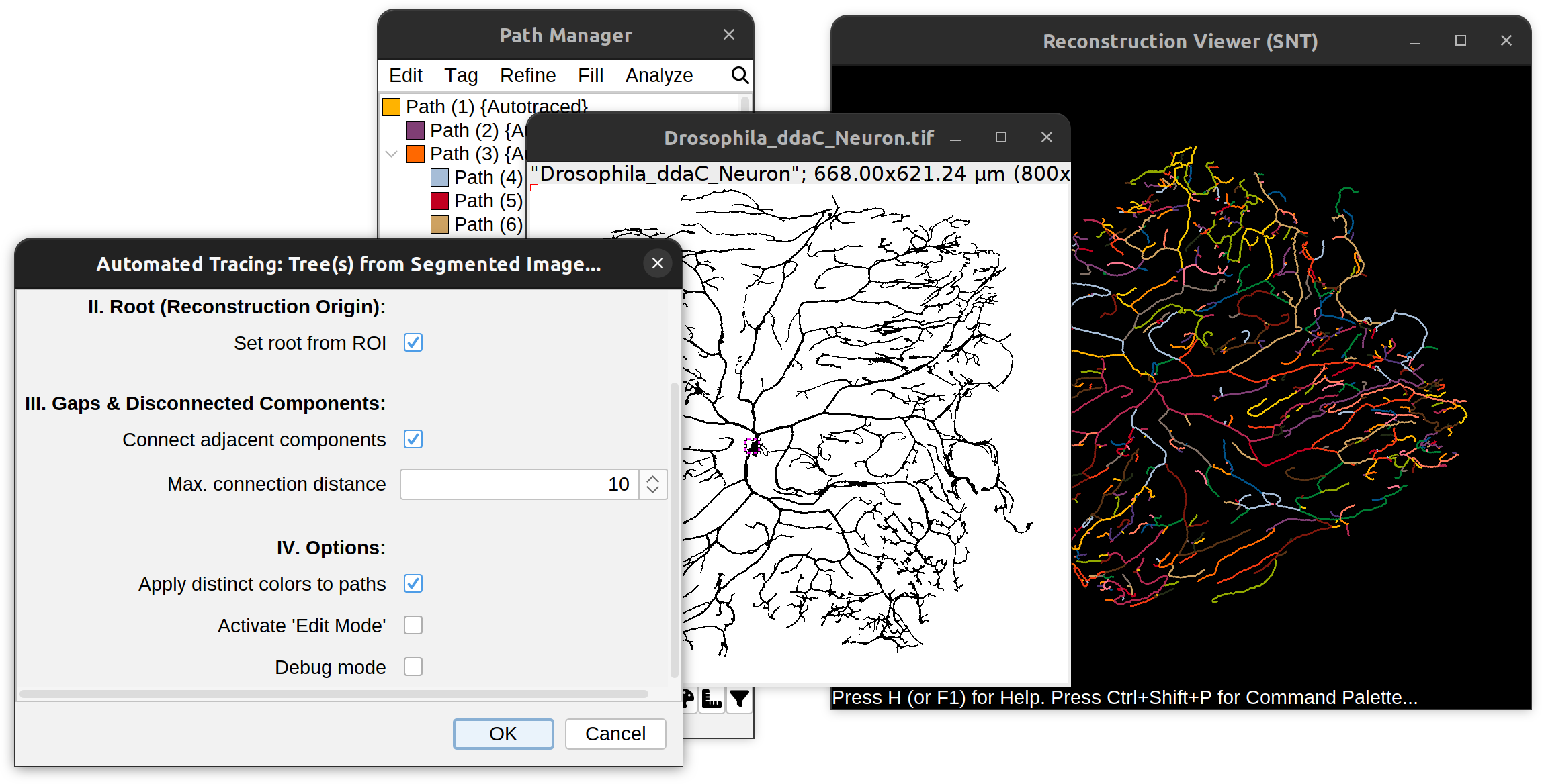 Fully automated tracing routines can be accessed through the Auto-trace menu in the main dialog.